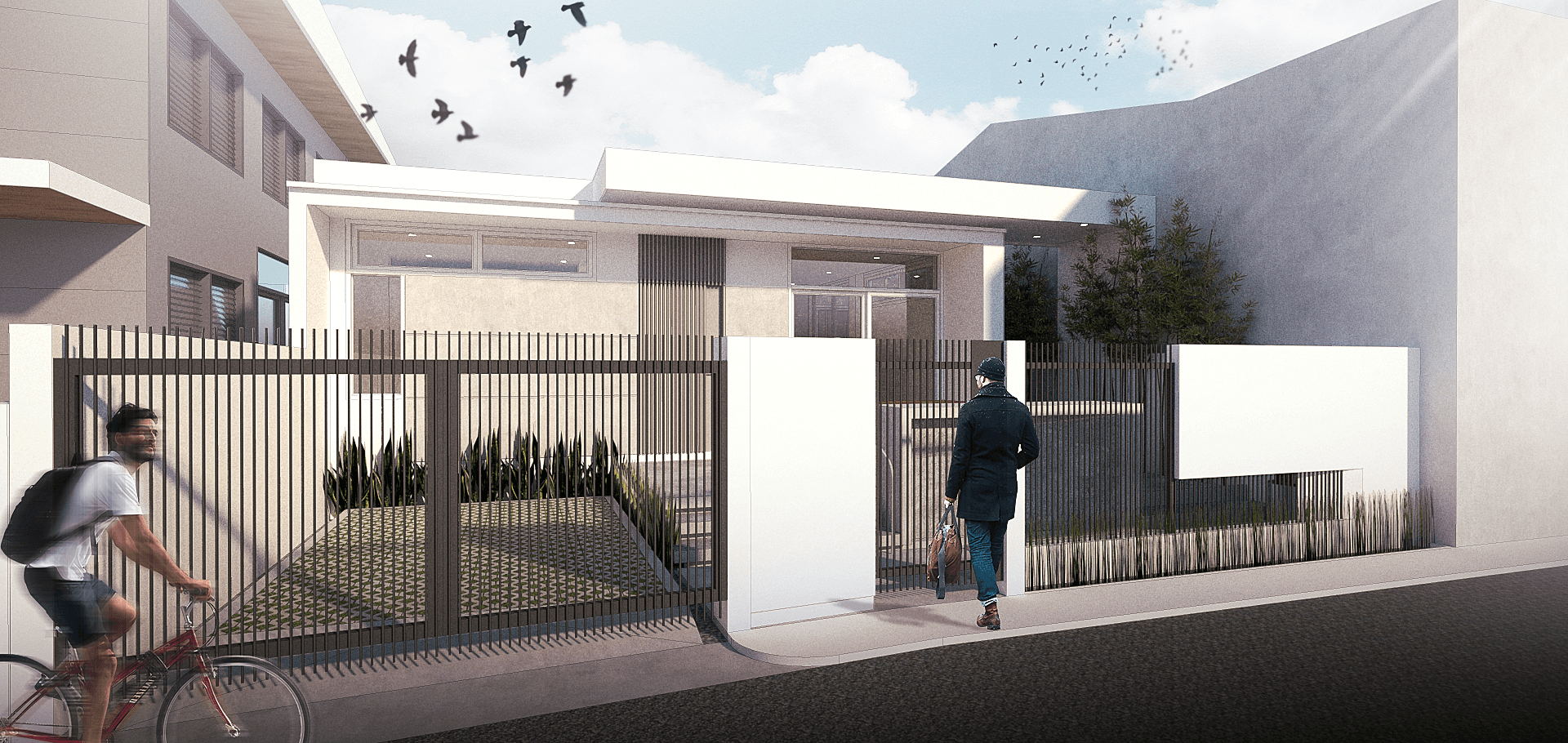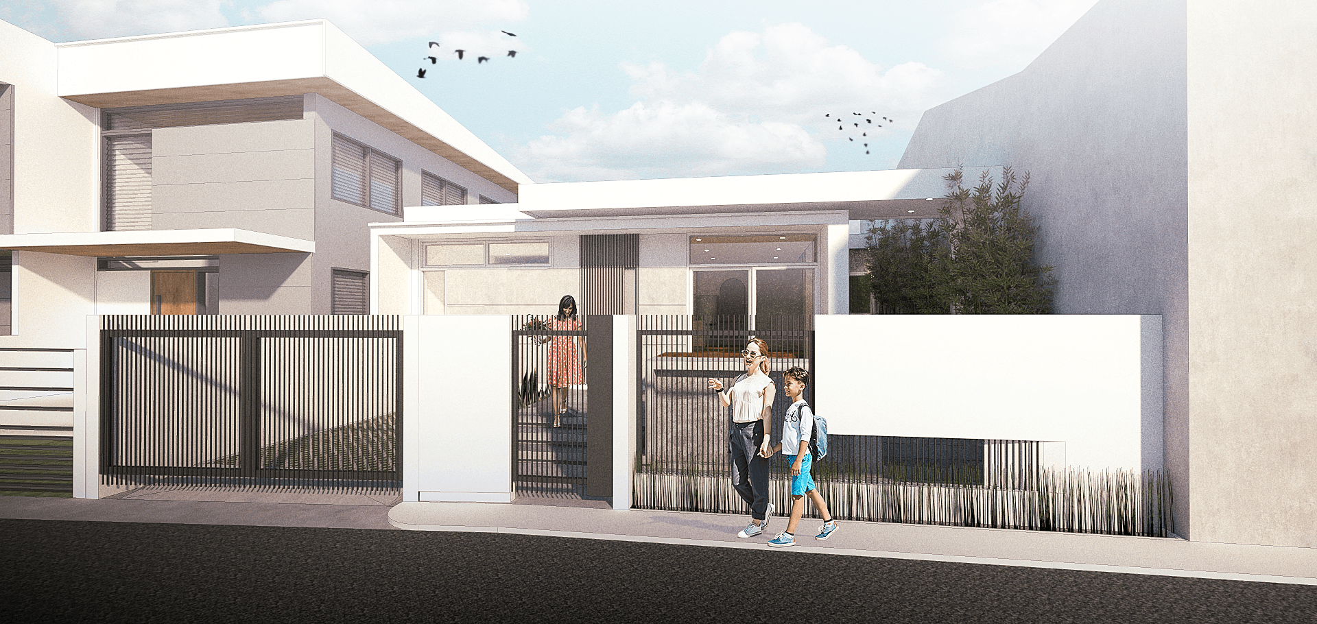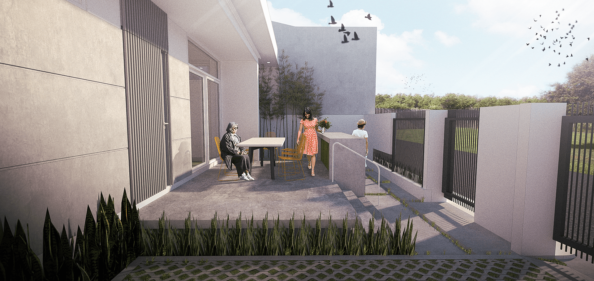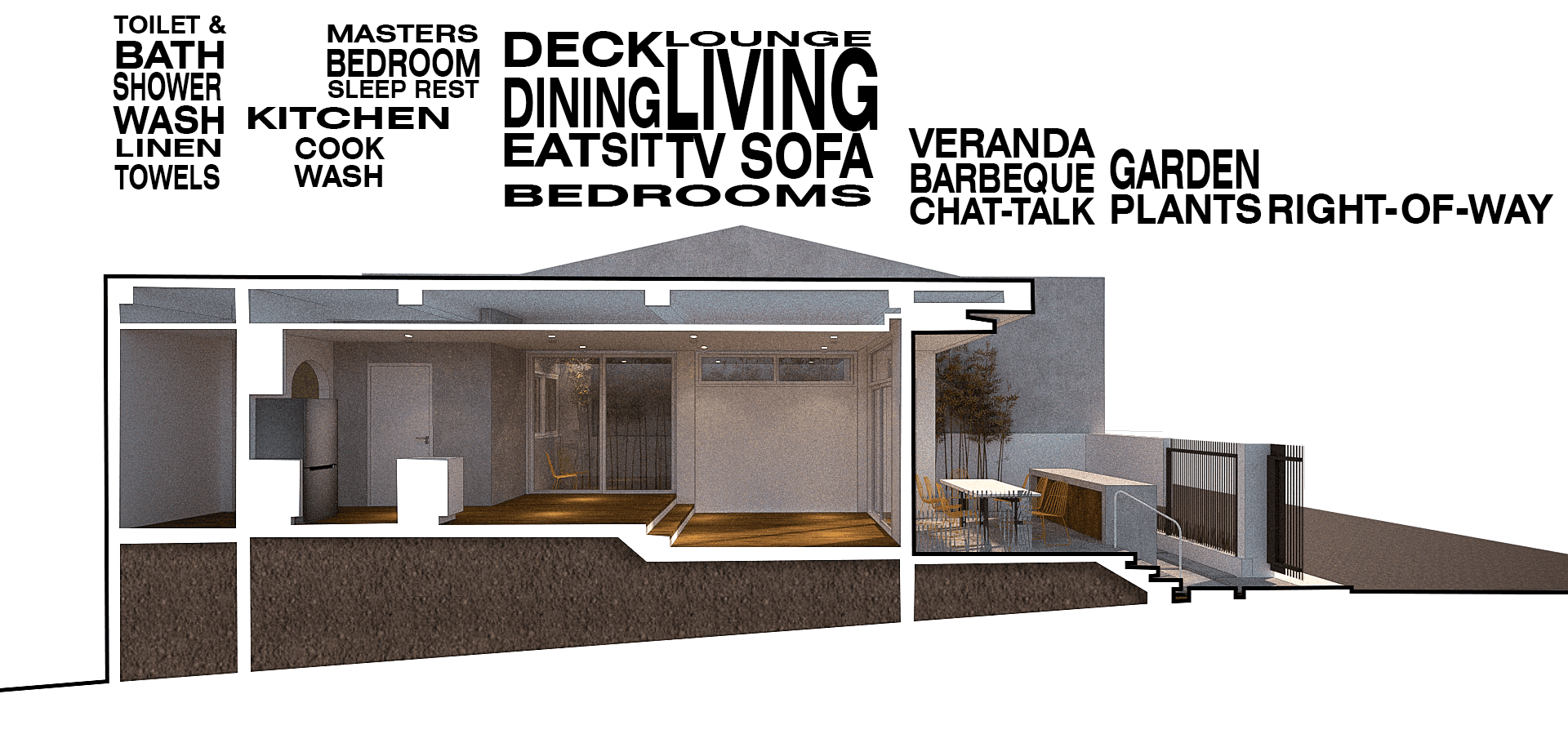 A humble family home, carefully planned from street to veranda. Spaces are arranged to support light, flow, and daily life within a limited footprint.